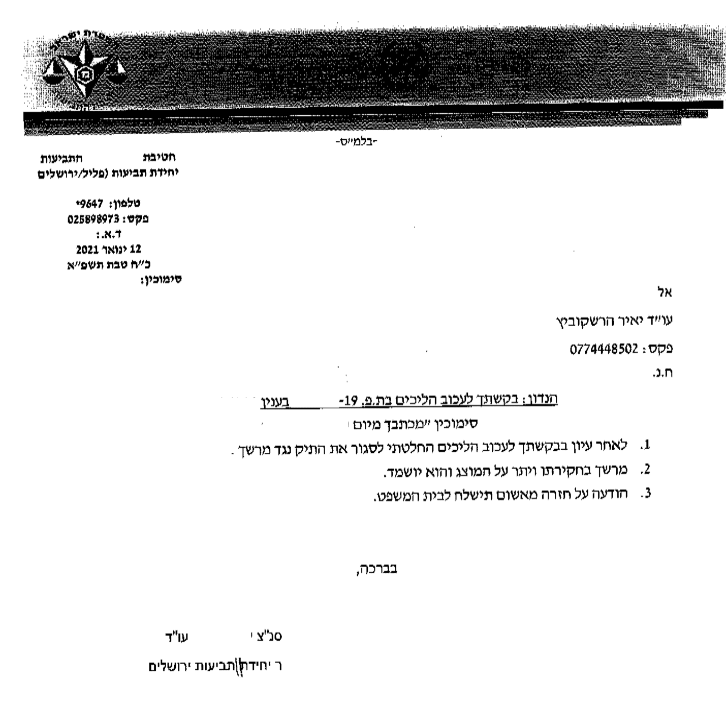 הקליניקה ייצגה פונה שנחקר באזהרה והתיק כנגדו נסגר מחוסר ראיות. הפונה טען לחפותו וביקש כי נשנה את עילת הסגירה לחוסר