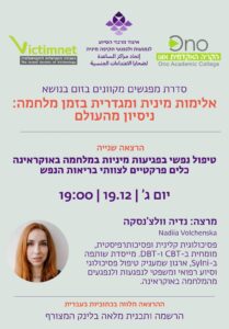 Ono Academic College, together with the Association of Assistance Centers For Victims of Sexual Assault, and Victimnet, the Israeli Society of Victimology