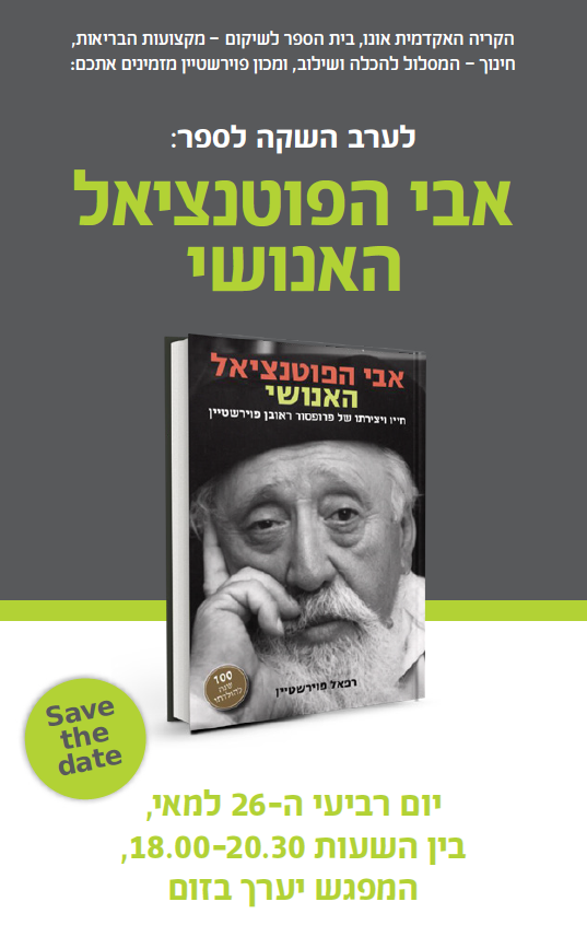 Ono Academic College is hosting the launch event for Rabbi Dr. Rafi Feuerstein’s new book “The Father of Human Potential” published by Yediot. The book describes the life and creative output of his father, the famed Israeli psychologist, Prof. Reuven Feuerstein known for his theory of human potential and intelligence which states “it is not fixed, and instead, modifiable”.