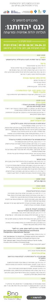 - Research on Ethiopian Jewry – From Explanation to Understanding: Rabbi Dr. Sharon Zeude Shalom, Founder and Director, Ono’s International Center for the Study of Ethiopian Jewry