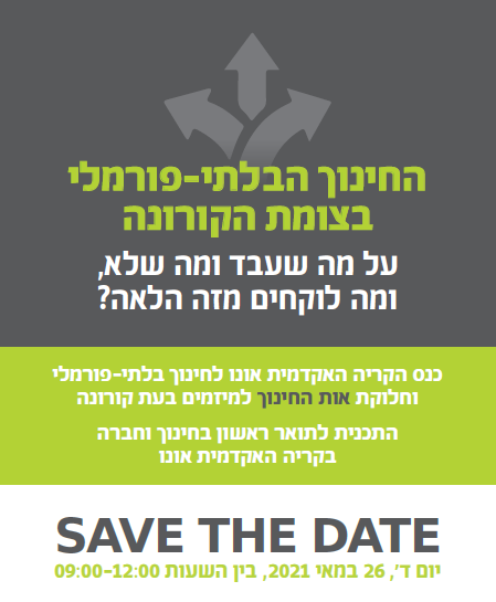 On May 11, 2022, Ono Academic College’s B.A. program in Education and Society in the School of Humanities and Social Sciences will co-host a conference entitled, “The Future of Informal Education in an Age of Partnerships”. The event will open with the presentation of awards for ground-breaking research and partnerships informal education by the School’s Dean, Prof. Tova Hartman.