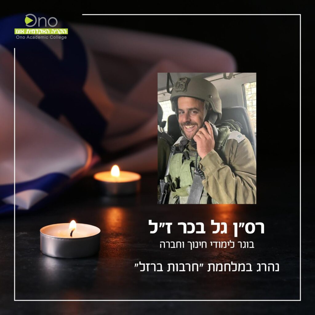 Ono Academic College bows its head in sorrow over the deaths of our students and graduates, who fought valiantly in the “Iron Swords” War. We share in the grief of the families of the hundreds killed in the murderous attack and the subsequent war and wish a speedy recovery to the injured.