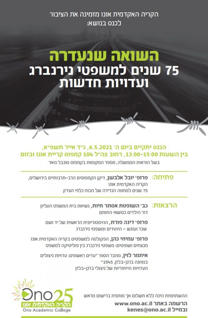 - Amichai Cohen, Faculty of Law, “Victors and Judges: The Nuremberg Trials: Between Politics and Justice”