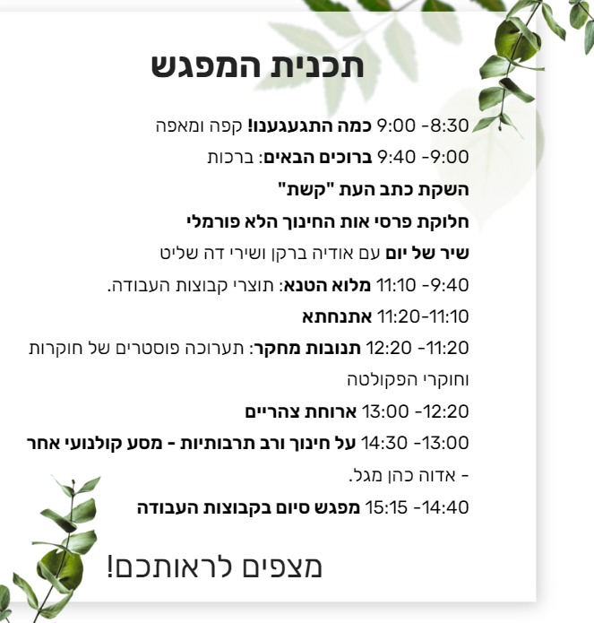 One development of particular interest was the upcoming publication of the book ‘’The New Enlightened” by the School’s researchers, featuring interviewers with students from a wide variety of backgrounds who represented their family’s first participation in higher education. Pictured here are Prof. Amia Lieblich, Director of Ono’s School of Society and the Arts, who led the project, and Dr. Hagit Sabag, one of the researchers.