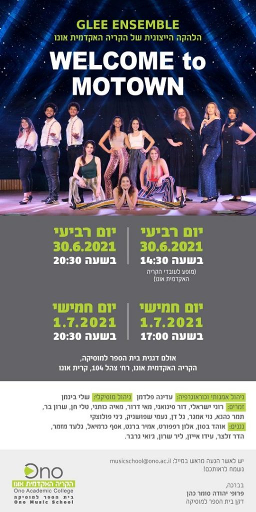 Ono Academic College’s GLEE Ensemble is putting on a spectacular show with the great songs of Motown!