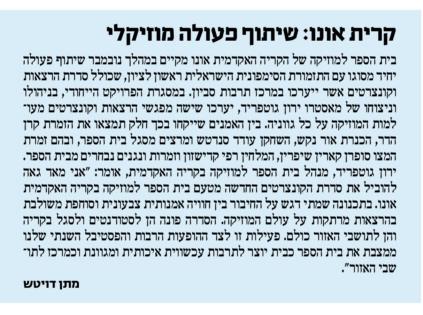 שליחת טופס זה, מהווה הסכמה לקבלת חומר פרסומי מבית הספר למוסיקה, הקריה האקדמית אונו.